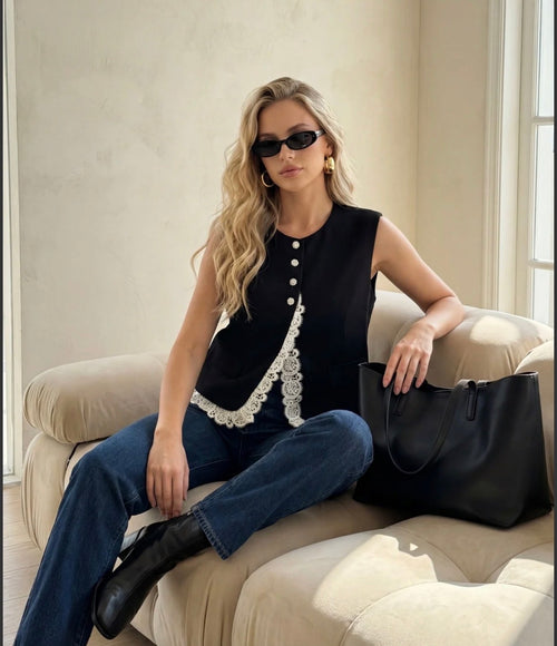 Ärmelloses Spitzentop mit Steine